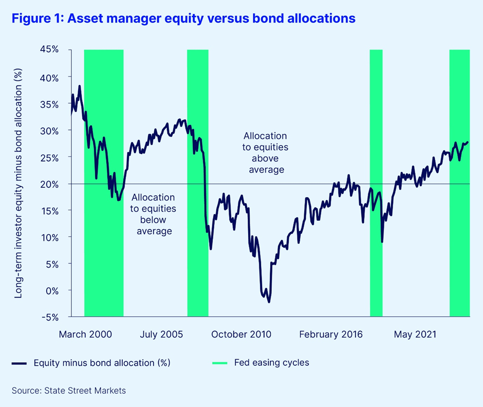 equities relative to bonds. Over the past 25 years, the average allocation to